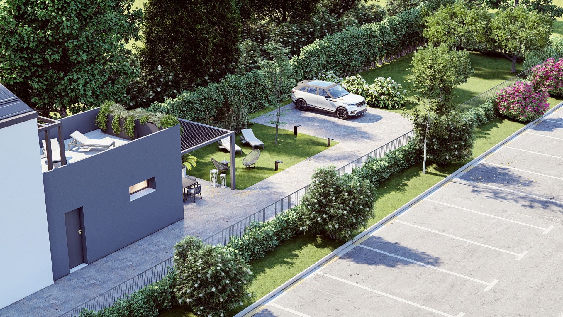 Ogni immobile di Residenza Viale Trento include posti auto all’interno dell’area privata: questo garantirà a tutti i residenti il massimo del comfort, della privacy e della sicurezza. Dimentica lo stress dovuto alla mancanza di spazio: anche quando sei di fretta, il tuo posteggio sarà garantito!